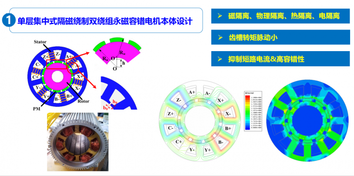 (1)较当前世面上的伺服电机,团队设计的高可靠双绕组永磁容 错伺服电机具有磁隔离、物理隔离、热隔离、大电抗、齿槽转矩脉动小、高过载能力等优点。
