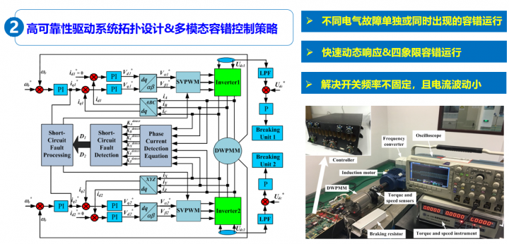(2)团队加入了余度电驱动系统,降低主功率管的数量和系统成本,同时提高了系统的可靠性和功率密度,且每套余度都能产生平滑的转矩,当一套余度故障时不会引入纹波或阻力矩进入系统。
